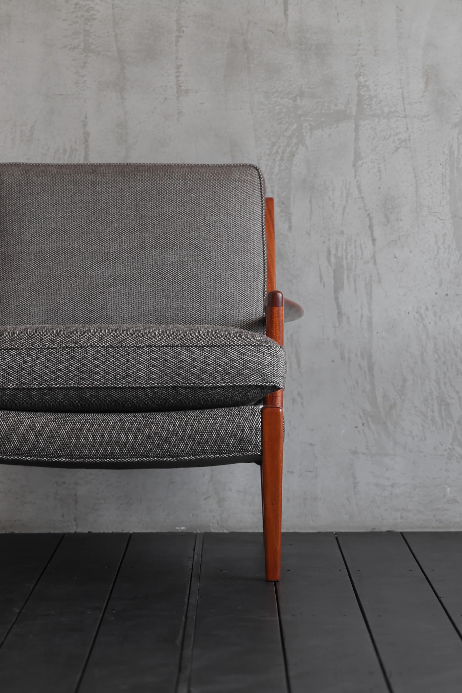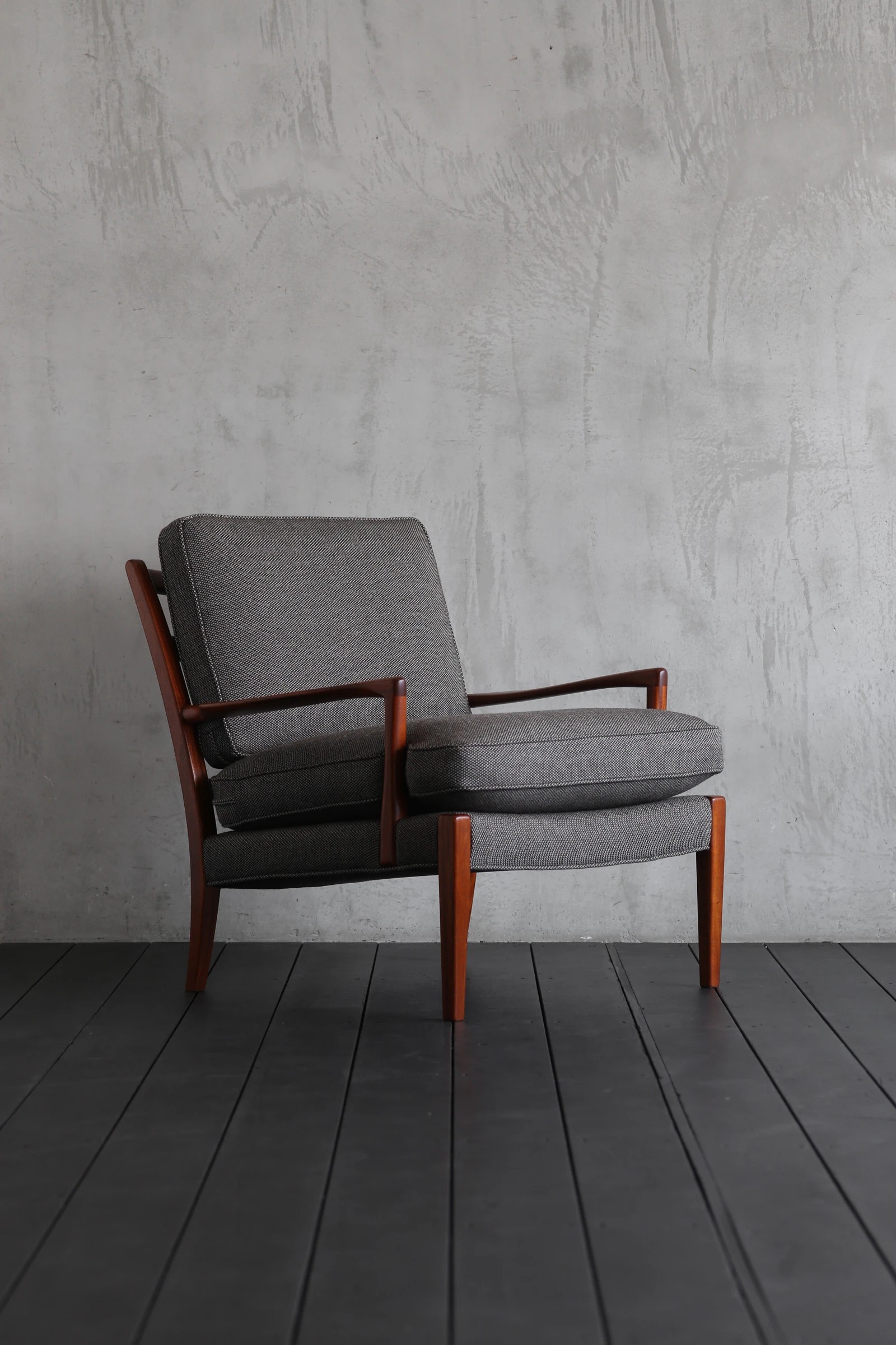 スウェーデン人デザイナーのArne Norell(アルネ・ノレル)によるイージーチェア。ソファやチェアの製作に定評のある家具メーカーNorell社製のもの。自身の名のついた現存するスウェーデンの家具メーカーである。
