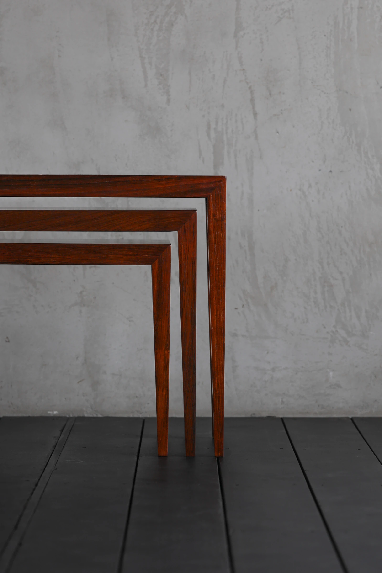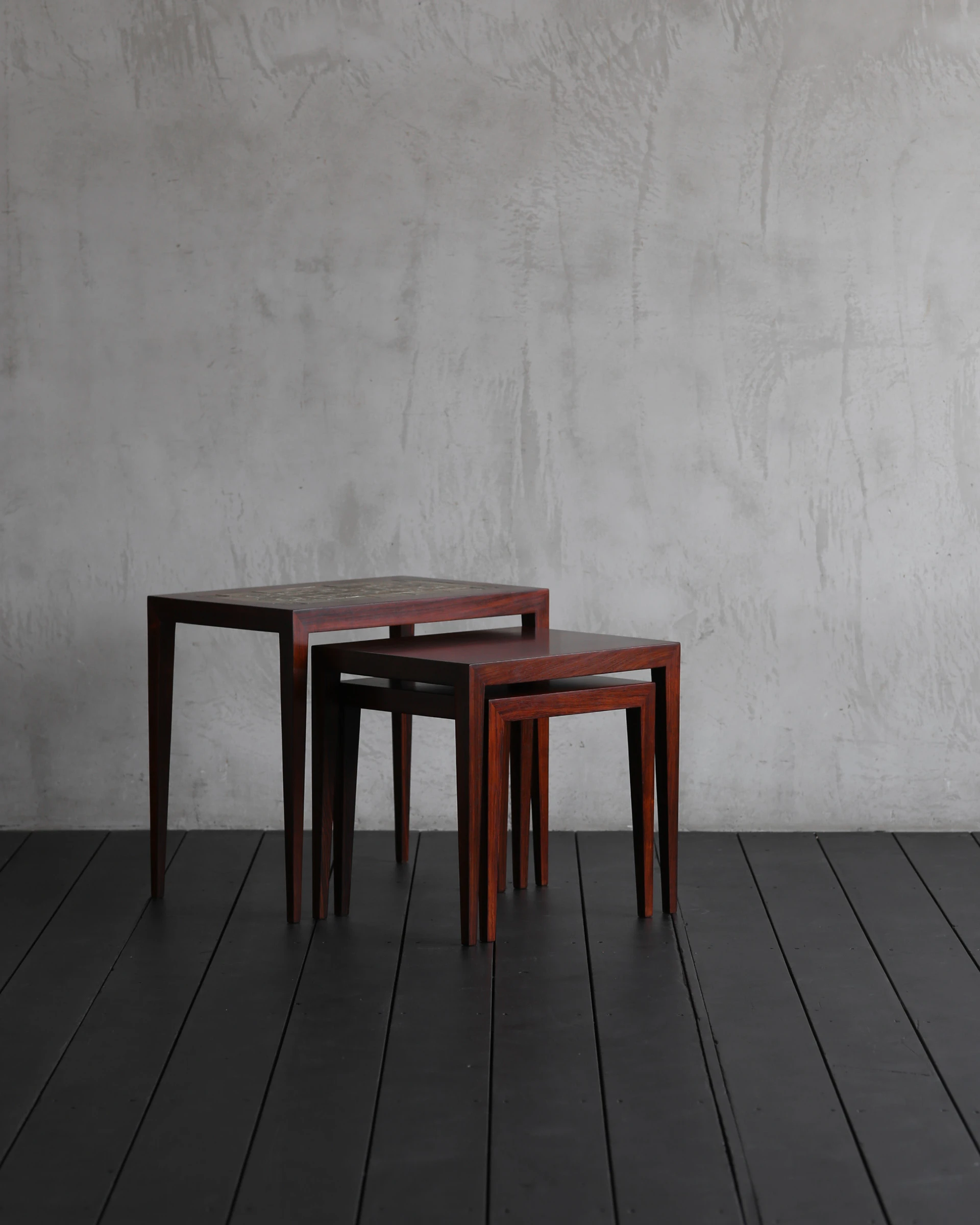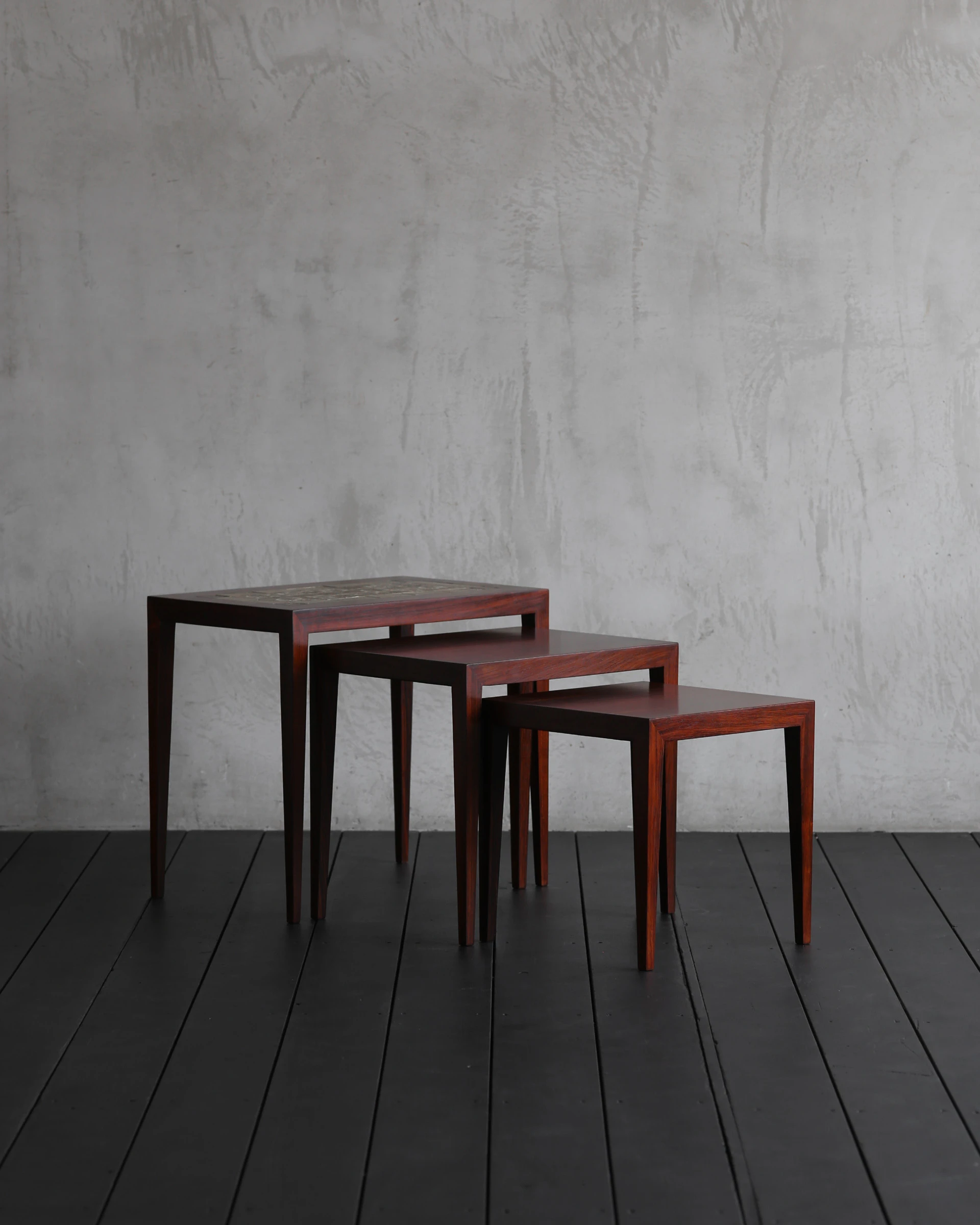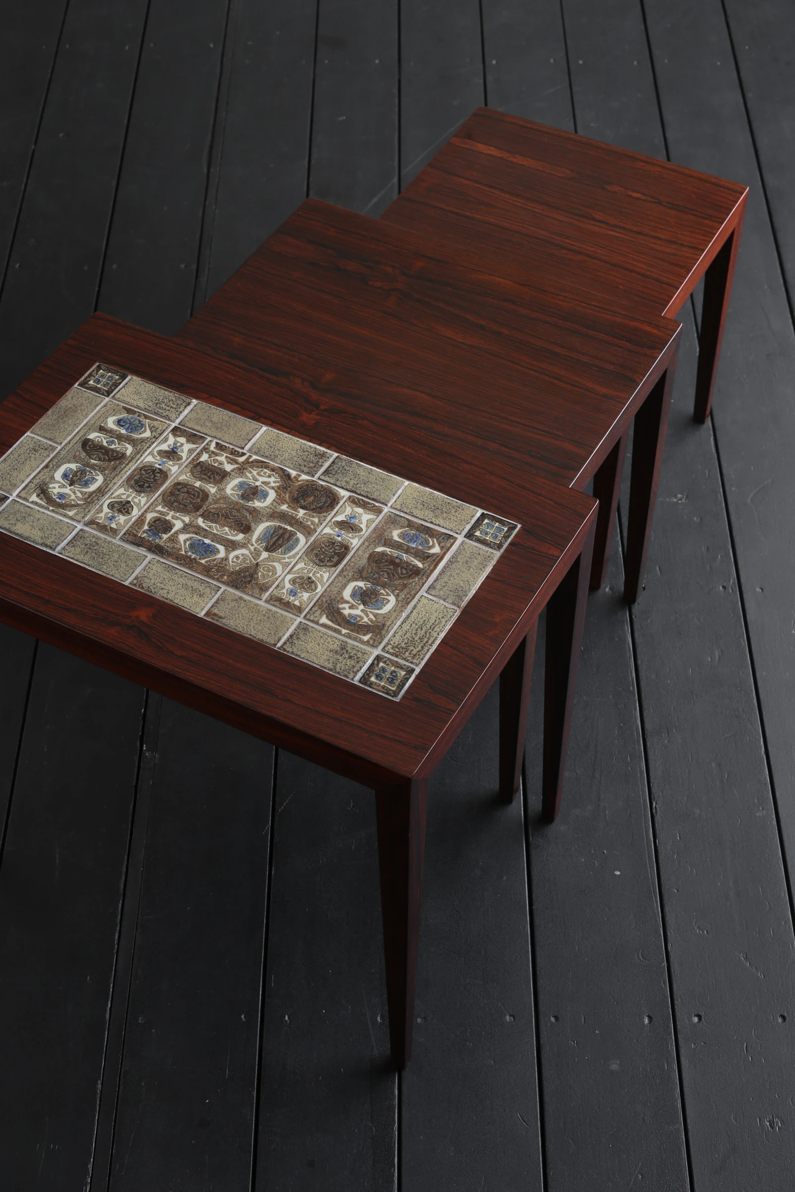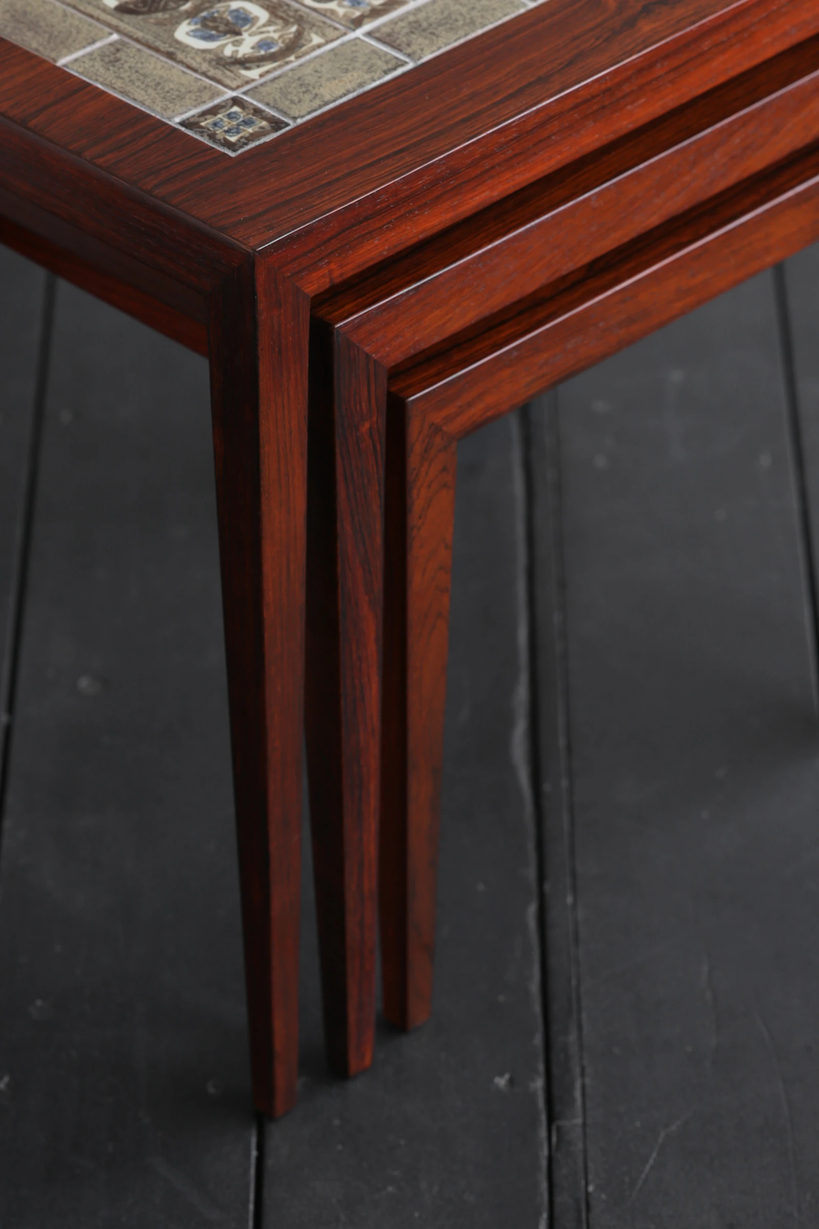 デンマークの家具メーカーHaslve(ハスレブ)社と、デンマーク老舗陶磁器メーカーRoyal Copenhagen(ロイヤルコペンハーゲン)社共作のネストテーブル。デンマークを代表するメーカー同士のコラボレーションは当時非常に珍しく、大成功したひとつの例として現代に語り継がれる。