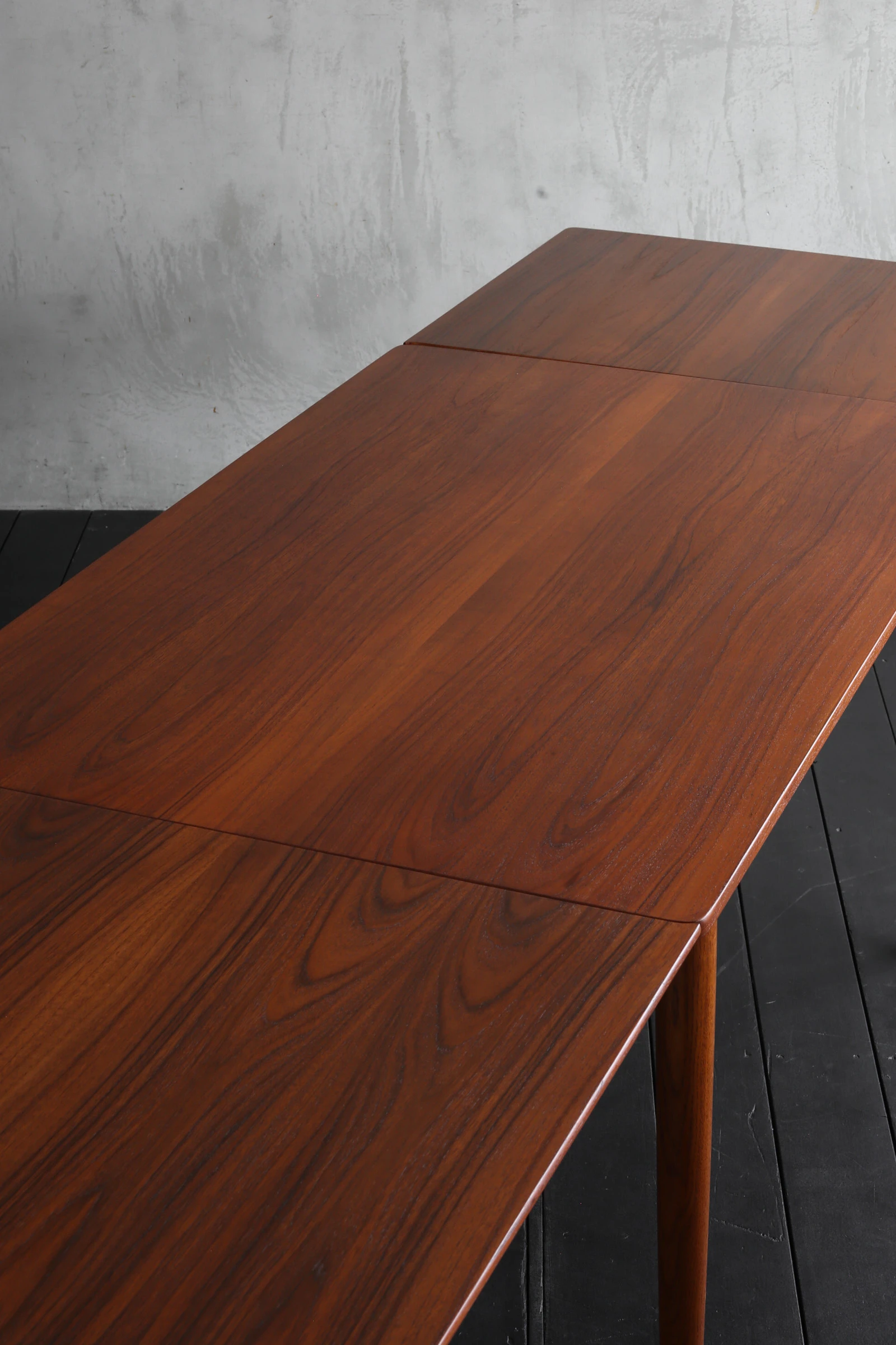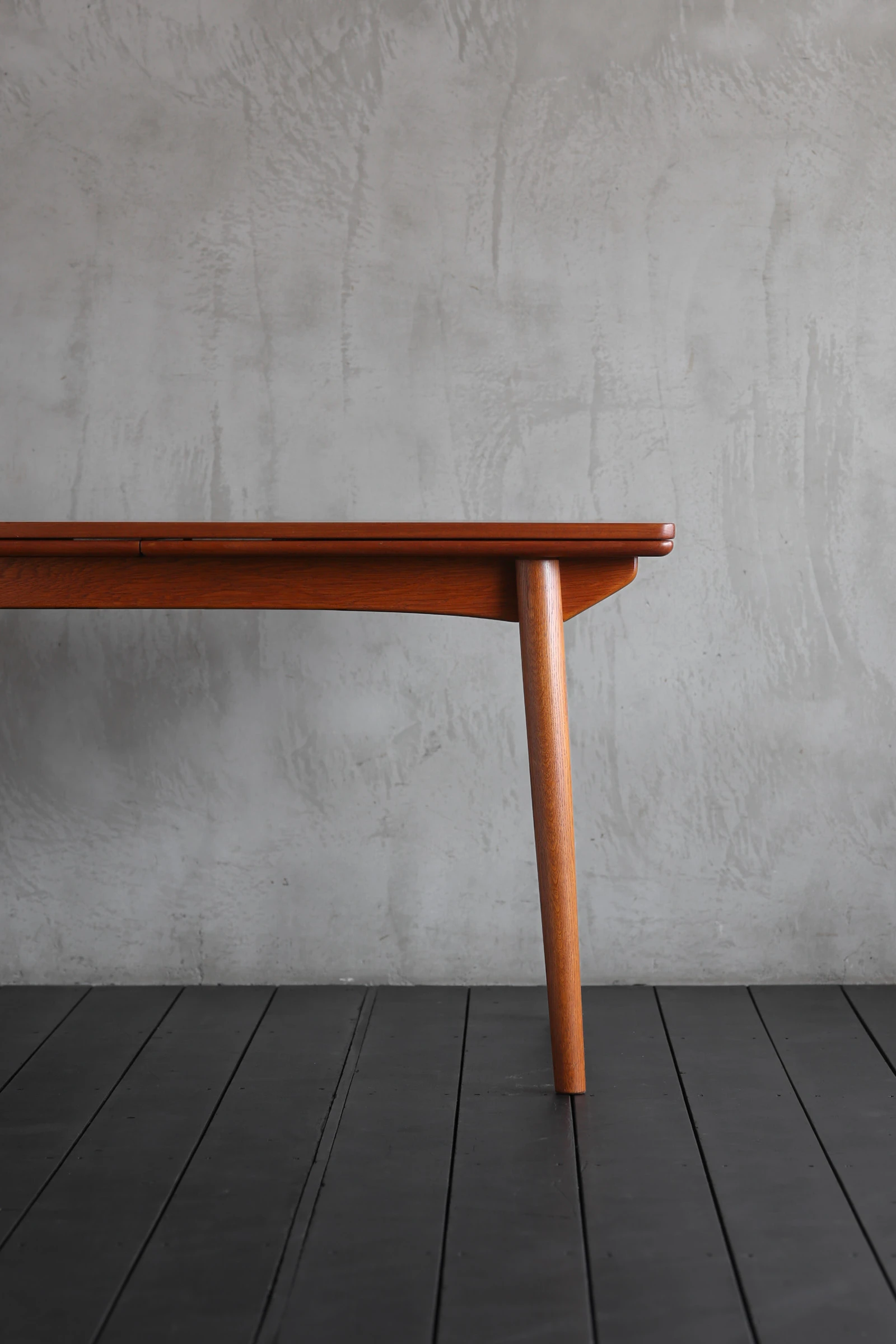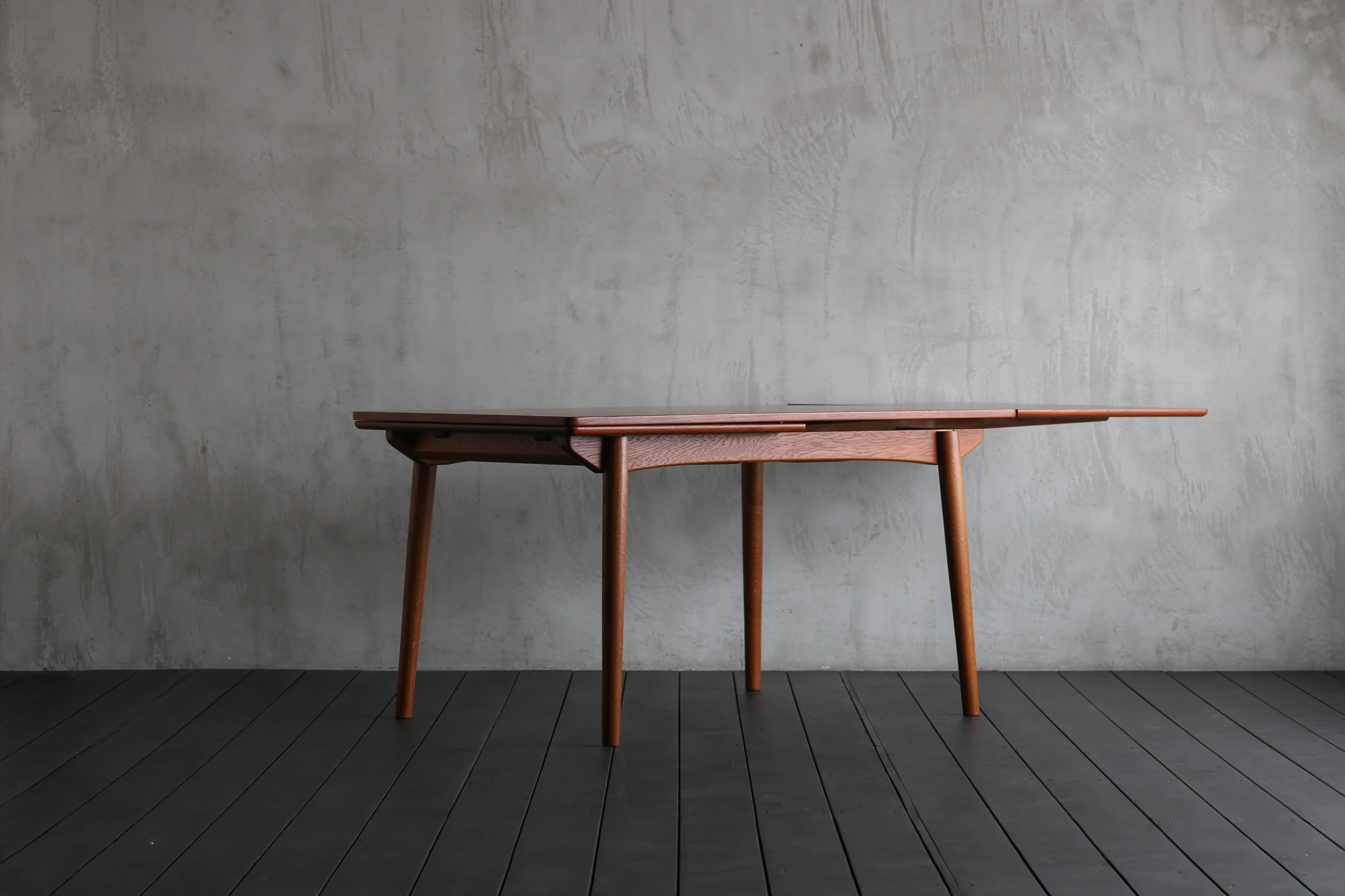 1960年代デンマーク製の拡張式テーブル。戦後のデンマークは都市部に人口が集中したことによる住宅不足によって、狭い間取りにファミリーで暮らしているケースも多く、そんな住宅事情を反映したこのテーブルは需要を見事に満たした。人々の生活に寄り添って生まれたプロダクトは機能的で、半世紀以上の月日が流れた今でも世界中で愛されている。