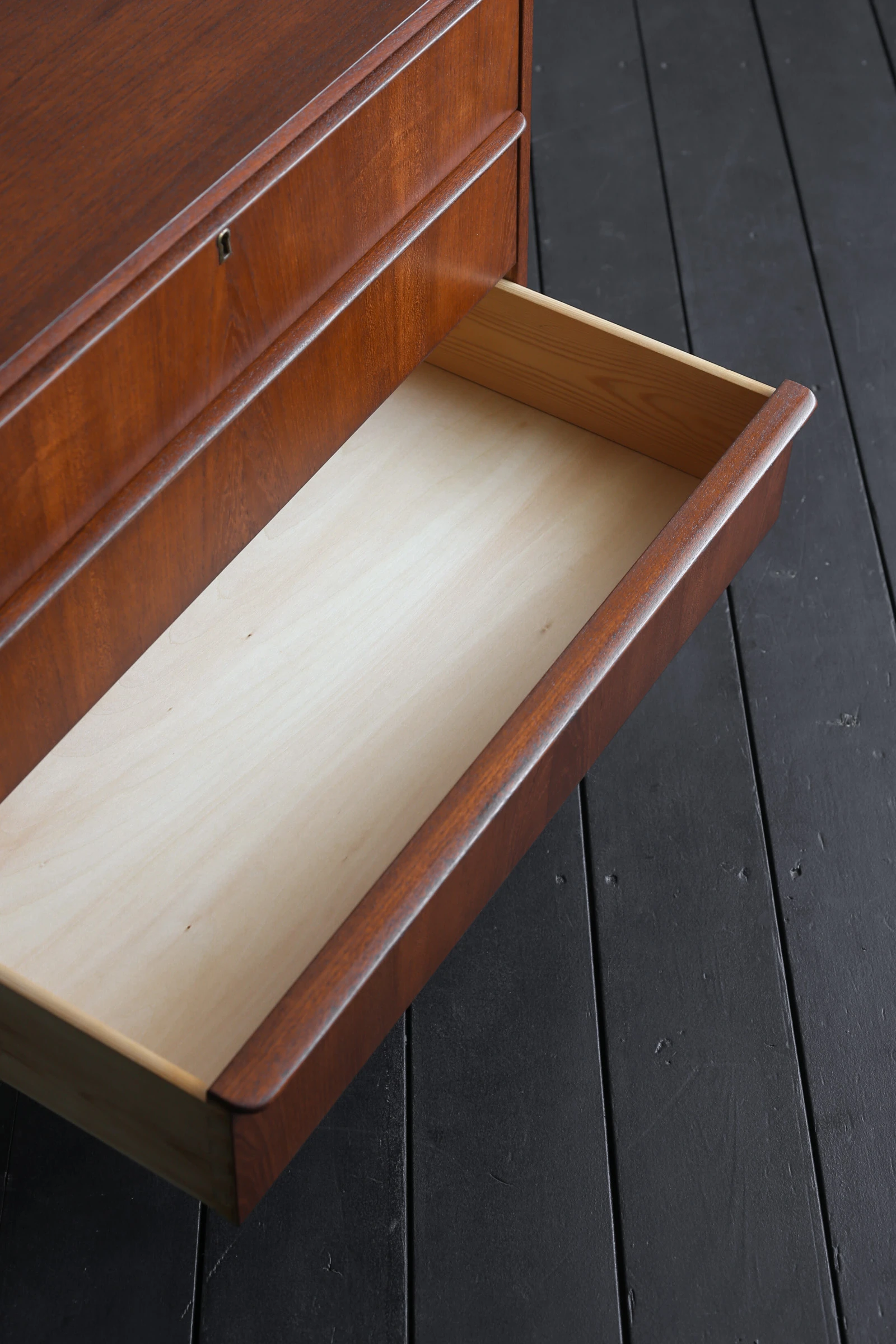 最上段には鍵穴が備わっておりますが、このチェストには元々鍵が付属しておりません。使用上、問題はございませんので、ご安心ください。