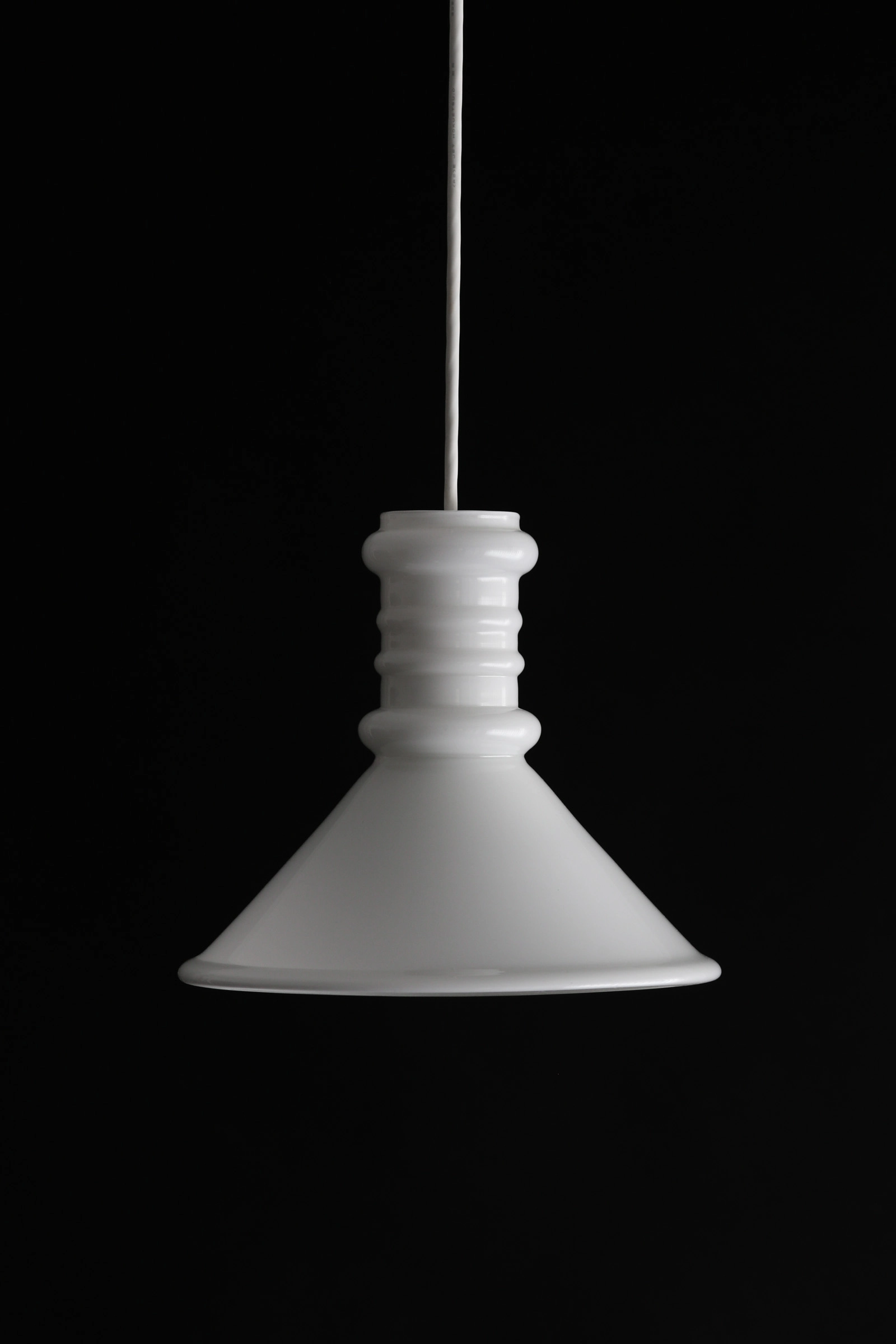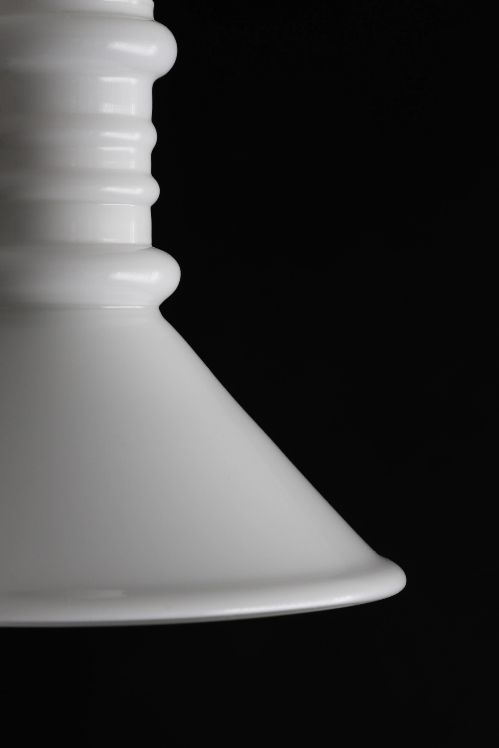 Sidse Wernerの特徴でもある神殿の柱や波紋を彷彿させる優美な造形のネック部分が本作の特徴的なところ。ガラスシェードをよく観察していると、熟練した職人らの技術力の高さを窺い知ることが出来る。しっとりとした艶をまとい、ランプを必要としない日中も美しく宙に佇む様子は彫刻的なガラスの美しさがよく表れている。