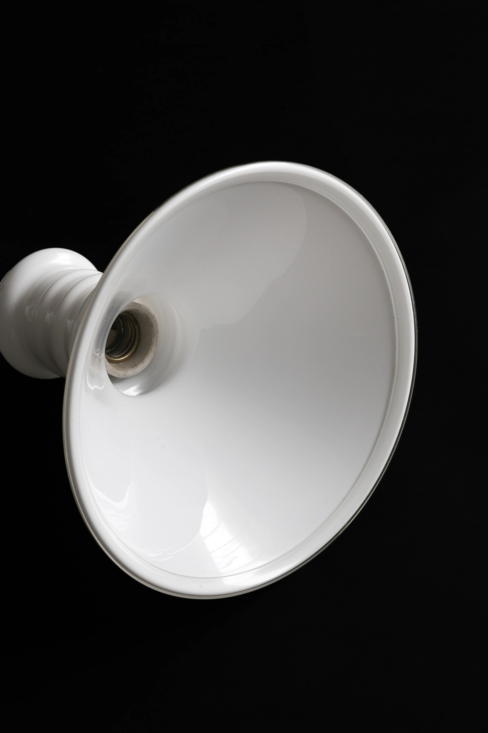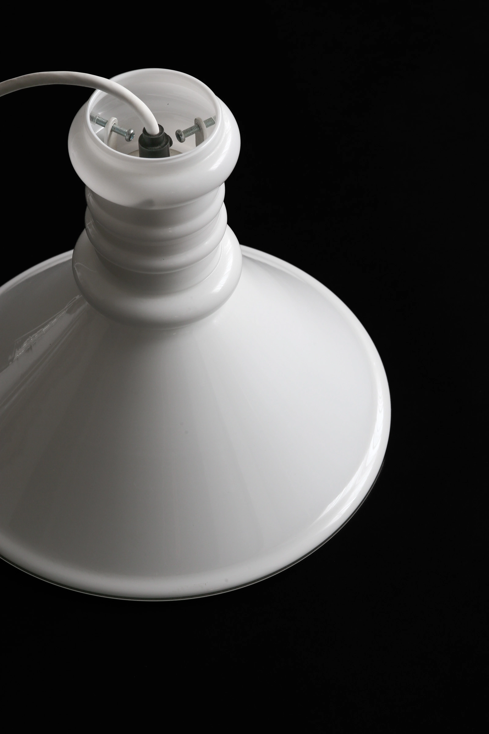 ひとたび、光を灯せばよりシェード全体がふわりと光を放つ。下方は開放されている為、ダイニングテーブルをしっかりと明るく照らしてくれ、乳白ガラスを透過した優しい灯りで周囲に柔らかい光が広がる。部屋のシンボルランプとしてよりダイニングを素敵な空間に演出してくれるだろう。