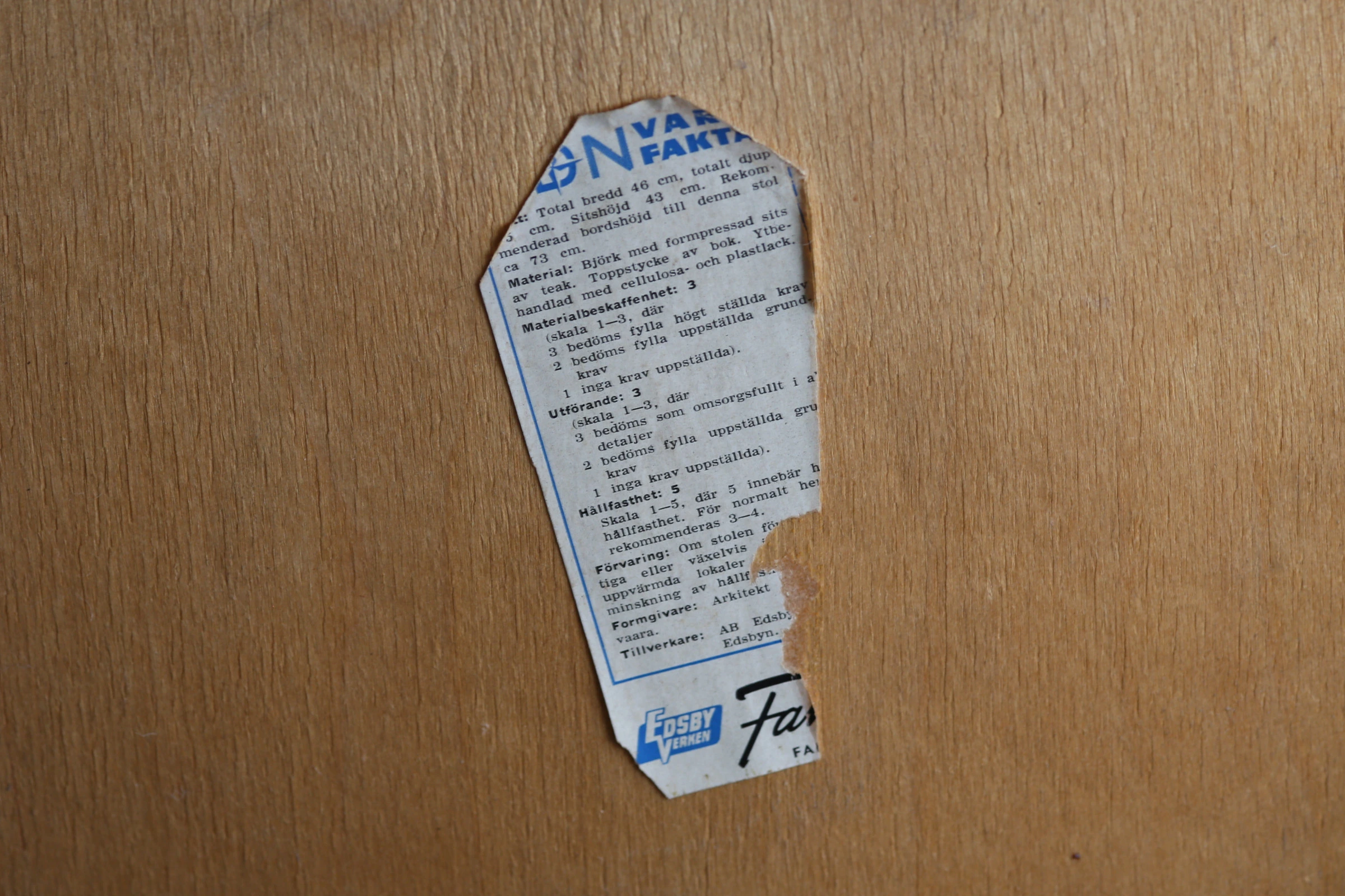 ファネットチェア誕生のきっかけにこんな話がある。当時、製作を任されていたスウェーデンのEdsby Verken社は家具製作とは別にスキー工場を買収してノルディックスキー用品の販売を始め出す。その後、スキー用品の販売は成功を収めるも時代の流れと共にスキー業界を撤退。その際スキー用品の生産に使用されていた大量のバーチウッドを消費する為に木製椅子の製作を開始。デザイナーとしてイルマリタピオヴァーラを迎え入れ、EdsbyVerken社最大のヒット作ともいわれるファネットチェアを1949年に発表した。