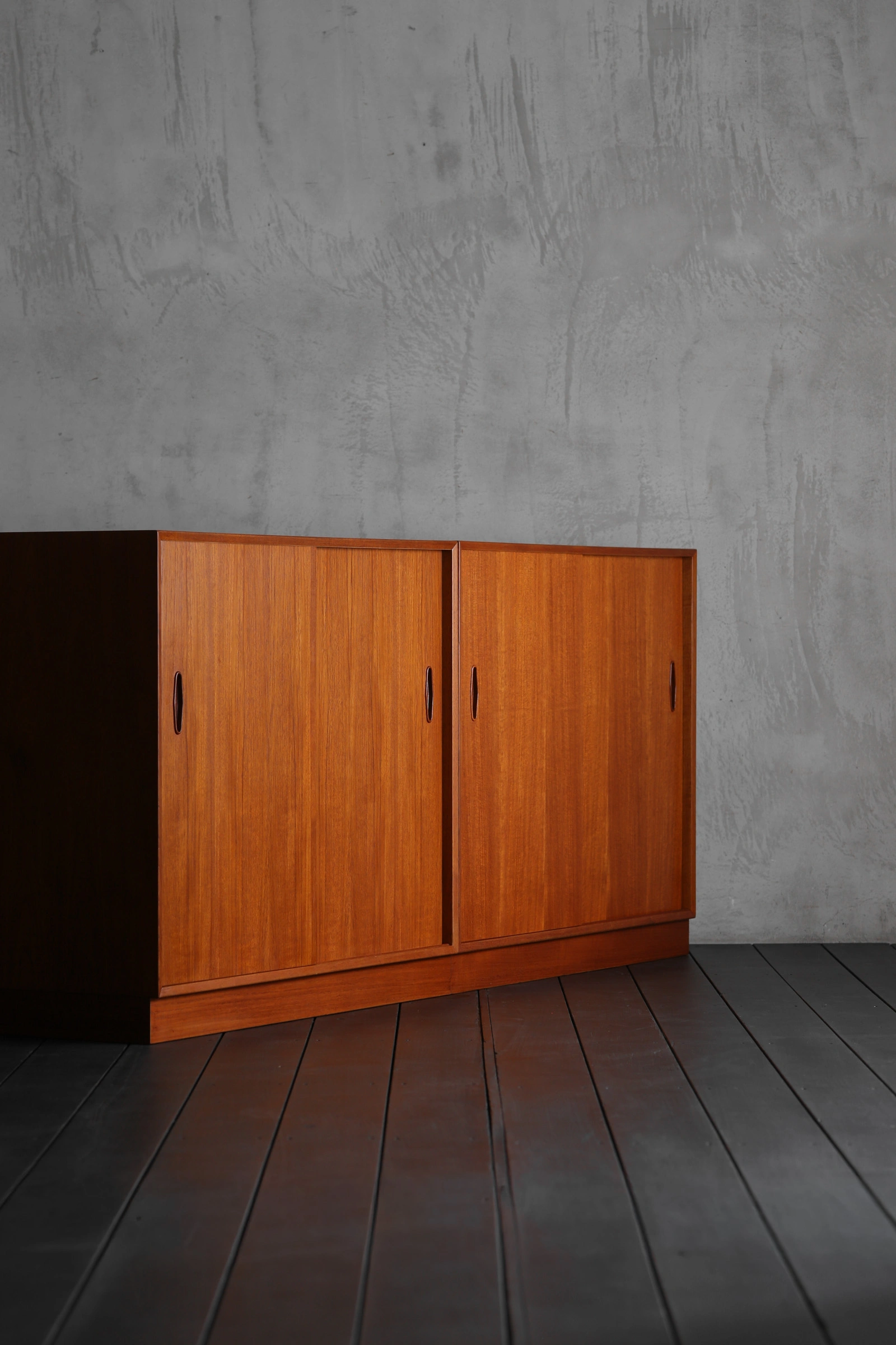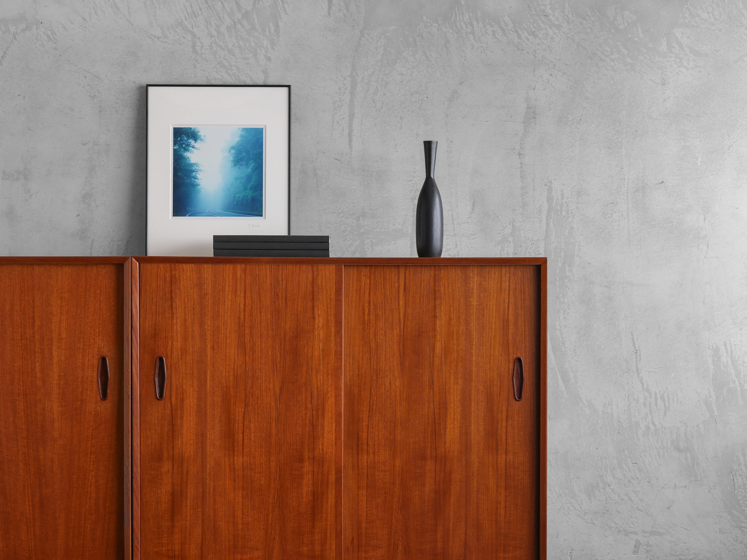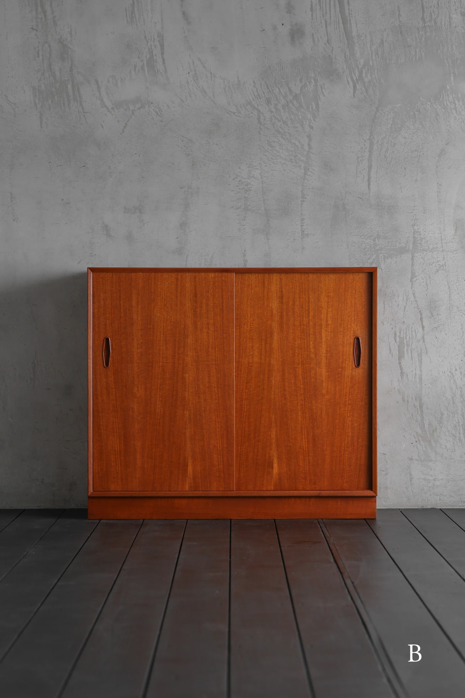 直線的でシンプルな意匠と機能性を持ち合わせた家具を多く残す、スウェーデン人デザイナーのNils Jonsson(ニールス・ヨンソン)によるキャビネット。当時Domi Monteシリーズとして、ブックケースやサイドボードなど多くのキャビネットが製作され、素材もチークやオーク、ローズウッドに至るまで使用されていたことからも彼が様々な住環境、インテリアに調和するよう注力していたことが分かる。それでは、本作を順に見ていこう。